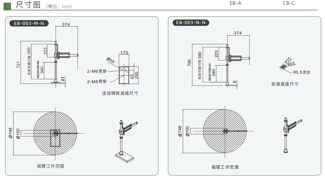 - 支撐桿和搖臂剛性按4倍安全系數(shù)設(shè)計,剛性高,不易變形,長期使用依然保持較高垂直度。吊塊和限位塊調(diào)節(jié)方便,可調(diào)范圍超過300MM,適應(yīng)性強。