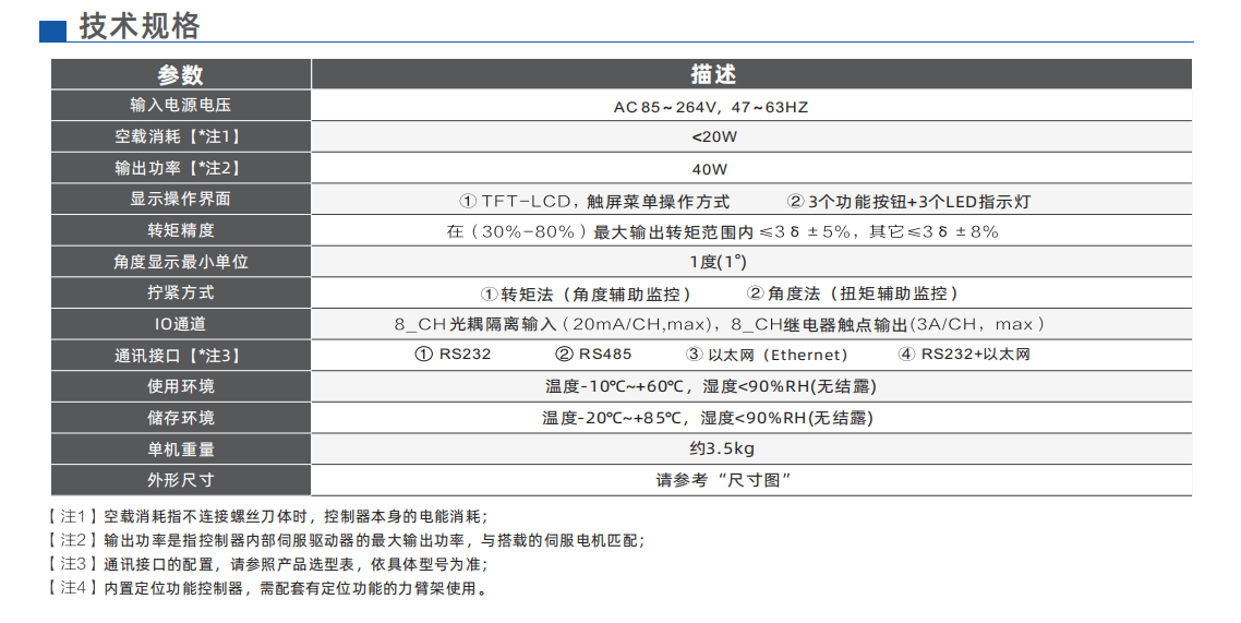 - 內(nèi)置伺服驅(qū)動(dòng)器,可提供扭矩、轉(zhuǎn)角及轉(zhuǎn)速等精密控制方式